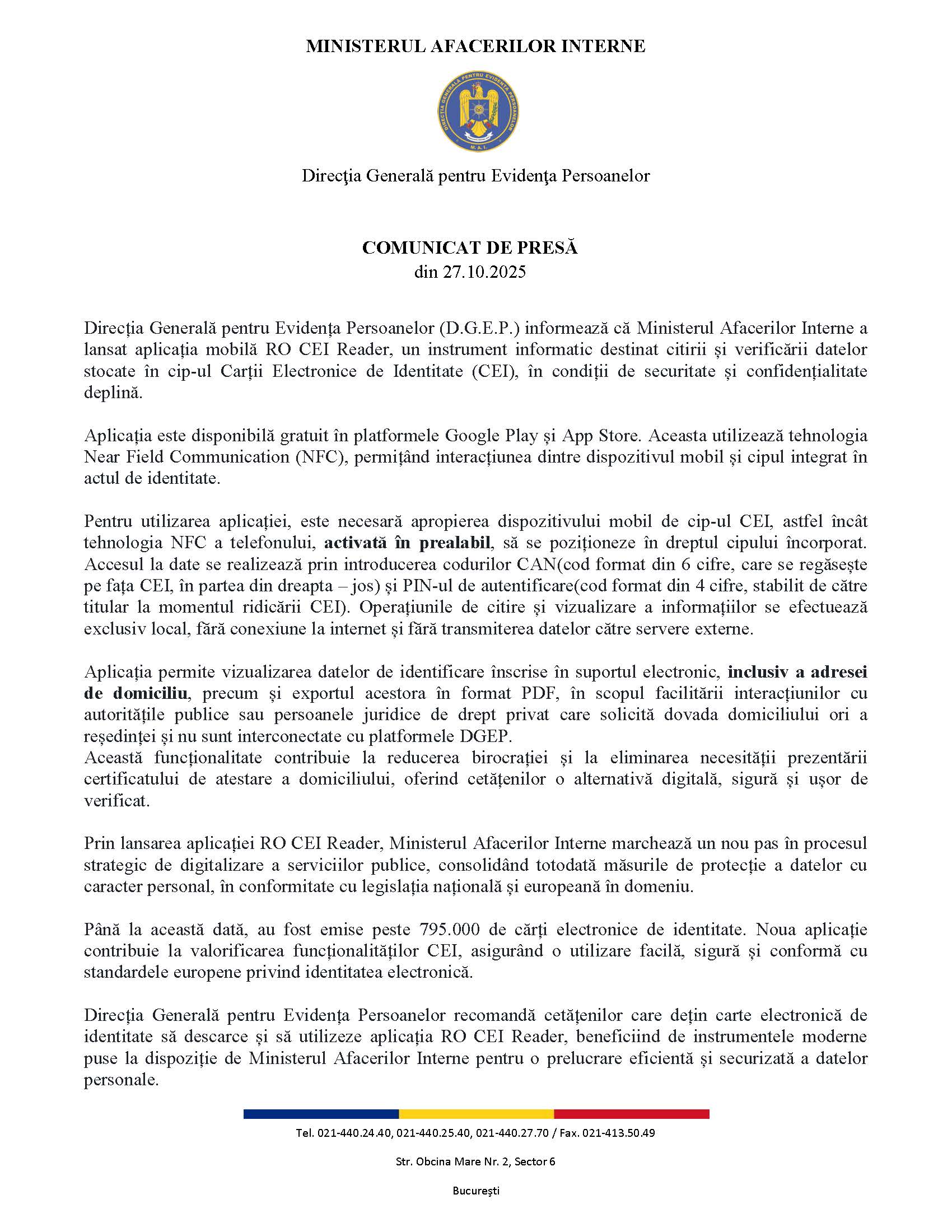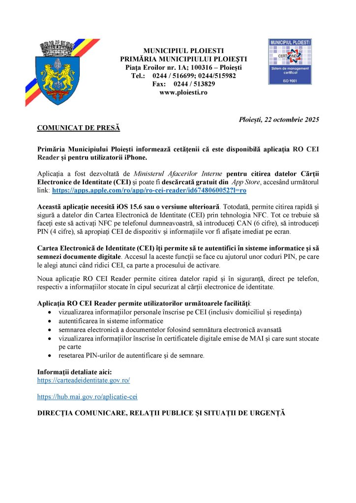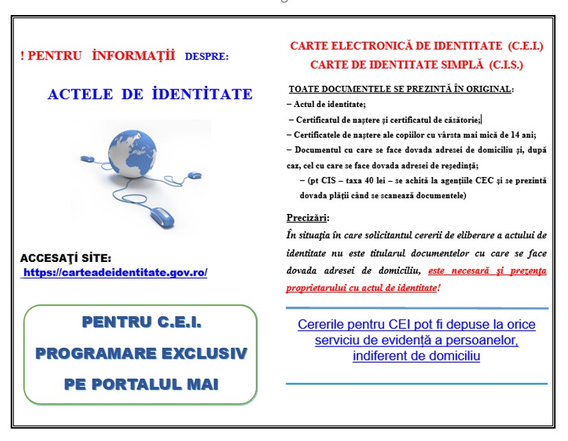 Pentru detalii suplimentare despre Cartea Electronică de Identitate, accesați: carteadeidentitate.gov.ro