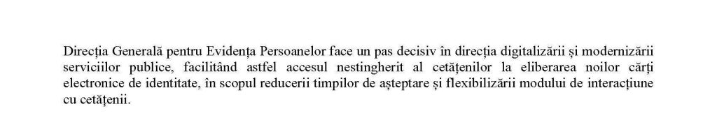 - Cetățenii care au nevoie urgentă de un nou act de identitate și nu găsesc locuri disponibile în localitatea de domiciliu.