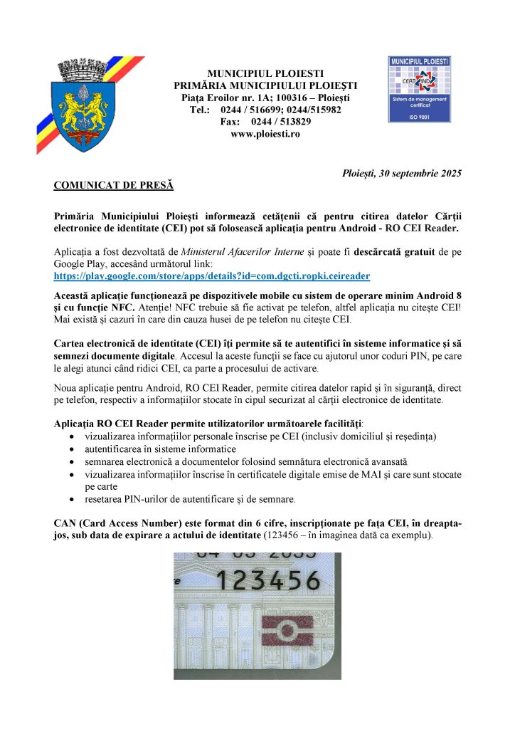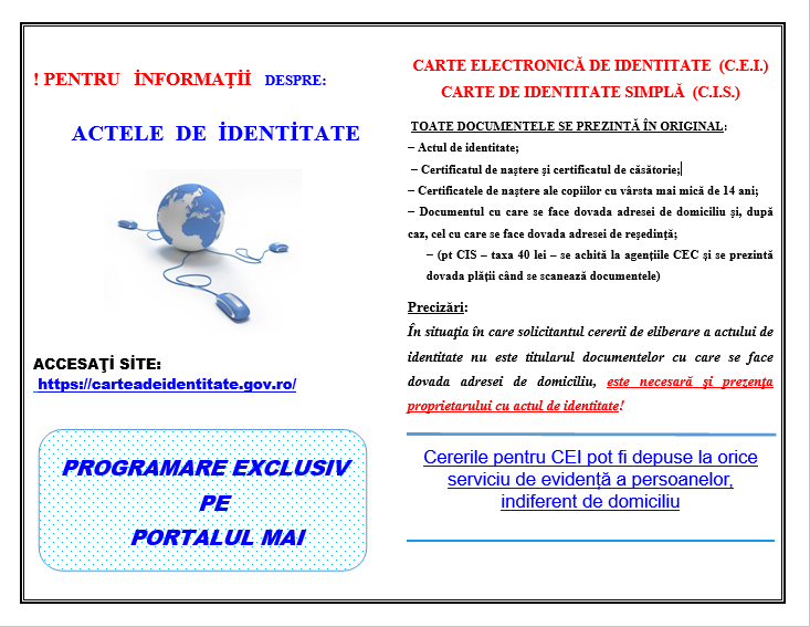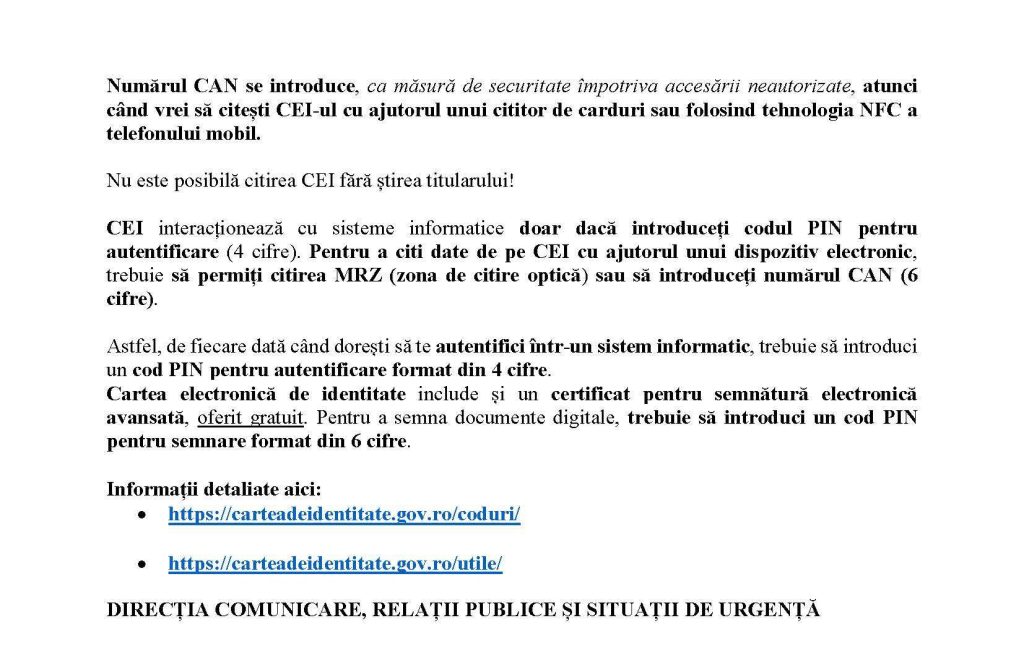 Pentru detalii suplimentare despre Cartea Electronică de Identitate, accesați: carteadeidentitate.gov.ro